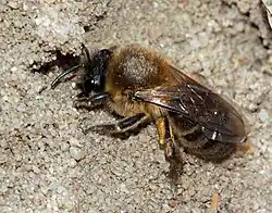 Colletes cunicularius, the vernal colletes[2] or spring mining bee, is a species of solitary bee from the family Colletidae which is widespread in the Palearctic from Britain to the Pacific Ocean which nests in areas of open, sandy soil.
