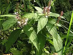 Collinsonia japonica (Japanese: シモバシラ or 霜柱, shimobashira), also known as Keiskea japonica, is a white-flowered perennial plant of the Lamiaceae family native to Japan and known for the frost flowers that form on dead stems.[1][2]