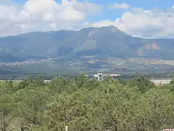 At 6,035 feet (1,839 m),[14] the city stands over 1 mile (1.6 km) above sea level. It is near the base of Pikes Peak, which rises 14,115 feet (4,302.31 m) above sea level on the eastern edge of the Southern Rocky Mountains. The city is the largest city north of Mexico above 6,000 feet (1,800 m) in elevation.