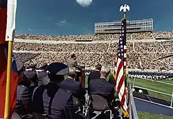 The city's military presence began during World War II, beginning with Camp Carson (now the 135,000-acre Fort Carson base) that was established in 1941.[28] During the war, the United States Army Air Forces leased land adjacent to the municipal airfield, naming it Peterson Field in December 1942.[29][30]