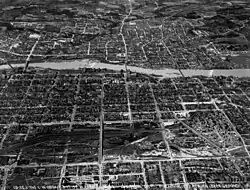 - Downtown, also sometimes called "Uptown" (though "Uptown" is actually the title given to both a nonprofit organization operating to encourage area growth and development or "urban renewal" in the city and also to the actual physical area of that development itself, which is an expanding subsection of the downtown district located in the areas from Broadway to the Chattahoochee River)[25] is the city's central business district, and home to multiple historic districts, homes, and churches, such as the Columbus Historic Riverfront Industrial District, the Mott House, and the Church of the Holy Family.