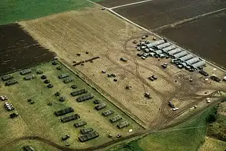 In the mid-1970s the Medical Unit, Self-contained, Transportable (MUST) designation was applied. During the Cold War, with conflict possible against the Soviet Union and Warsaw Pact, active duty MUST units were staffed by all the basic personnel necessary (e.g., medics, X-ray techs, pharmacists, cooks, clerks). Doctors, nurses and specialists would be mobilized and mate up with the unit in the field. The unit would be flown to West Germany, withdraw pre-positioned complete hospital MUST equipment and military vehicles from warehouses and then deploy. It contained all necessary functions to provide care for 200 beds, including two intensive care units, eight medical wards, an emergency room, four operating rooms, an orthopedic room, a laboratory, an X-ray, a pharmacy and the unit's transport vehicles. It consisted of hard containers, which would be transported to the designated site, then the wheels would be removed and then expanded. They housed the operating rooms, laboratory, X-ray, and pharmacy. Inflatable shelters were used to provide double wall insulated areas for the patient care areas of the hospital.[3] These "inflatables" required a power system called a "utility pack" (also known as a "U-pack" or "power station") to provide utility services, heat, cooling, inflation, hot water, and filtered air from chemical, biological, and radiological contaminants. The utility pack was powered by a centrifugal flow gas turbine engine (Libby Welding Co. Model LPU-71, Airesearch Model PPU85-5, AmerTech Co. Model APP-1, or Hollingsworth Model JHTWX10/96). It provided electricity at 60 Hz AC, 400 Hz AC, and 24 VDC. At 250 beds, the hospital required eight U-packs. Each consumed 30 US gallons (110 L) of jet fuel per hour. After several years of using inflatables they were abandoned in the mid-1980s, largely due to the weight of the inflatables, and the amount of fuel required just to keep the tents from collapsing.