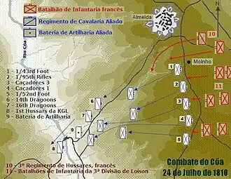 The Combat of the Côa (July 24, 1810) was a military engagement that occurred during the Peninsular War period of the Napoleonic Wars. It took place in the valley of the Côa River and it was the first significant battle for the new army of 65,000 men controlled by Marshal André Masséna, as the French prepared for their third invasion of Portugal.