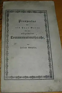 - ^ a b Joseph Schipfer, Versuch einer Grammatik für eine Allgemeine Communications- oder Weltsprache, Wiesbaden 1839