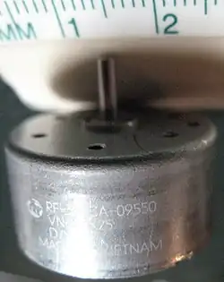 A commutator is a rotary electrical switch in certain types of electric motors and electrical generators that periodically reverses the current direction between the rotor and the external circuit. It consists of a cylinder composed of multiple metal contact segments on the rotating armature of the machine. Two or more electrical contacts called "brushes" made of a soft conductive material like carbon press against the commutator, making sliding contact with successive segments of the commutator as it rotates. The windings (coils of wire) on the armature are connected to the commutator segments.