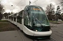 An update and upgrade of the Citadis 403 has been ordered in 2013, these 22 trams are fitted to be used on the German part of the network.[33] More trams were ordered in early 2020 to get rid of the first batch of Eurotram from ABB.[34]