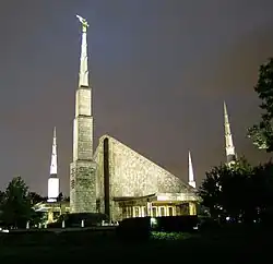 ![]() | 42 | Operating | Portland Oregon Temple () | Oregon | United States | North America | 7.3 acres (29,542 m2) | 80,500 sq ft (7,479 m2) | 181 ft (55 m) | 1 | 4 | 14 | Sloping roof, six spire | Leland A. Gray | Yes
