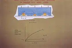 Compliant bonding is used to connect gold wires to electrical components such as integrated circuit "chips". It was invented by Alexander Coucoulas in the 1960s.[1] The bond is formed well below the melting point of the mating gold surfaces and is therefore referred to as a solid-state type bond. The compliant bond is formed by transmitting heat and pressure to the bond region through a relatively thick indentable or compliant medium, generally an aluminum tape (Figure 1).[2]