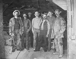 These claims were followed by claims from Lemuel S. "Sandy" Bowers (see Bowers Mansion), Joseph Plato, Henry Comstock, James Rogers, and William Knight. In the spring of 1859, after digging down to a depth of about ten feet, they found a gold-rich reddish quartz vein. Their discovery was actually part of the Comstock Lode, the Old Red Ledge.[2]: 5–6 The four men are therefore credited with the rediscovery of the mine previously found by the Grosh brothers.[5]