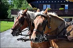 The Comtois horse breed is an old breed of horse that is believed to have descended from horses brought by the Burgundians of northern Germany to France during the fourth century.[1] It is believed that they have been bred in Franche-Comté and in the Jura Mountains since the sixth century. In the Middle Ages they were used as war horses.[3] They were bred in Franche-Comté and in the Jura Mountains[1] In the 19th century, other draft horses such as the Norman, Boulonnais, and Percheron were bred into the Comtois, and more recently the Ardennes was used to produce a stronger horse with better legs. Today, they are second only to the Belgian Draught in number in France.[1]