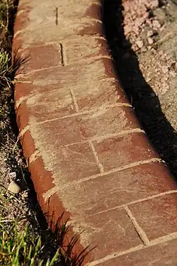 Concrete landscape curbing (or concrete landscape bordering) is an alternative to plastic or metal landscape edging. Landscape curbing is made with various elements of concrete depending on the climate where it is being used.[1] Concrete landscape curbing has become more popular over the last decade with suppliers offering a variety of styling options.