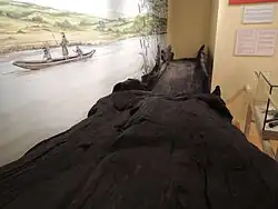 The museum's collection includes a 1500BC burial urn, a log boat from the 930AD,[1] and two 17th century coin hoards. The museum houses tableaux illustrating life in the town during prehistoric times, in the Civil War, in the heyday of the textile industry and during the Second World War. Figures from the past tell their stories, and interactive computers fill in the background. Relief maps show the changes over the centuries. The Civil War was particularly significant to Congleton – a former mayor of the town, John Bradshaw, was first to sign Charles I's death warrant. A cannonball from that time, still embedded in a piece of wall from Biddulph Hall, is in the museum.[6] There are frequent temporary exhibitions, often involving the work of local schools.