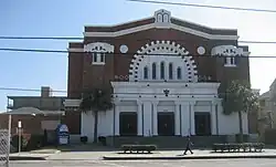 Beth Israel rebuilt its synagogue at the Carondelet Street location in 1924.[15] The new building was designed by Emile Weil, a Southern architect renown for his design of religious buildings and theaters. He designed other New Orleans' synagogues, including the Touro Synagogue and the Anshe Sfard, as well as other non-religious buildings throughout Louisiana.[22] Beth Israel's new Byzantine Revival building, with its seating capacity of 1,200, reflected "the growing economic and social confidence of the membership": it had "beautiful" stained-glass windows, a "magnificent" imported European chandelier, and "hand-carved Stars of David in the ceiling".[16][23] The building was dedicated on September 12, and a Boston rabbi, Henry Raphael Gold, was a guest speaker. He was so impressed that he stayed on, becoming Beth Israel's rabbi.[16]