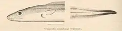 - ^ Kurogi, H.; Chow, S.; Yanagimoto, T.; Konishi, K.; Nakamichi, R.; Sakai, K.; Ohkawa, T.; Saruwatari, T.; Takahashi, M.; Ueno, Y. & Mochioka, N. (2015). "Adult form of a giant anguilliform leptocephalus Thalassenchelys coheni Castle and Raju 1975 is Congriscus megastomus (Günther 1877)". Ichthyological Research. 63 (2): 239–246. doi:10.1007/s10228-015-0492-5.