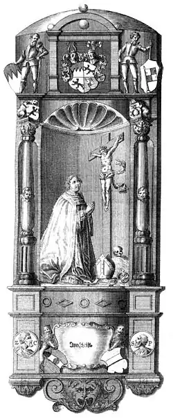 In 1542 when the plague broke out in Würzburg, he moved his court to Aschach and Neustadt. In August 1544 after reigning only four years he died which apparently solved the problem of his never having completed his ordination vows or formal installation as bishop.