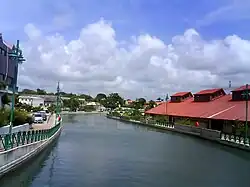The Constitution River, commonly called "The Careenage", is a river located along Carlisle Bay, on the south-western portion of Barbados. The western end of the river runs through the centre of Bridgetown in Saint Michael. The river acts as a channel for heavy rain run-off from the higher interior regions of the island. Additionally, it is a small sheltered shallow passage or yacht harbour for medium-sized yachts or small craft boats to dock in the city. It is located roughly 1 km south of the man-made Deep Water Harbour on the Princess Alice Highway.[1]