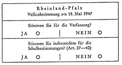 - The Social Democrats rejected the creation of the state of Rhineland-Palatinate and therefore called for the rejection of the constitution. The school article was also rejected. This would allow the Catholic minority in small communities to demand a denominational school. This would effectively make the simultaneous school the denominational school of the Protestant majority.