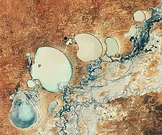 | Site Description | ![]() Over 30 species of water birds use the lakes for habitat, including numerous threatened species. The Menindee Lakes play a prominent role in the early stages of native fish lifespan.[3] The lakes system provides water for numerous towns, including Broken Hill, Menindee and Pooncarie. Due to the flat landscape that makes up the river, along with inconsistent rainfall, flows into the system at the end of the end of darling river are inconsistent.[4] A significant feature of the lakes is the connection with the Lower Darling river via Weir 32, where "Flows into this section of the river support a range of agricultural and environmental assets"[3] The Darling river has a prominent involvement in Aboriginal culture dating back over 13,000 years. This region is the traditional land of numerous different nations, though the most prominent group is the Barkinji people.[3] Barkindji means people of the Barka (the river).[5] |