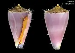 | Shell of Conus hilli (specimen at MNHN, Paris) | |