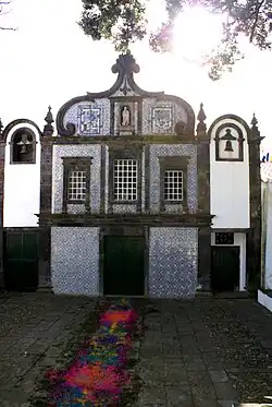 The chapel is to the invocation of Our Lady of the Conception (Portuguese: Nossa Senhora da Conceição), although it is commonly referred to as Our Lady of Sorrows (Portuguese: Nossa Senhora das Dores). Initially, the chapel was the location of two festivals, one on 8 September and the other 8 December, in honour of Nossa Senhora da Consolação (Our Lady of the Consolation) and Nossa Senhora da Conceição, respectively.[1] With time, the festival to Our Lady of the Conception began to occur in the parish of Água de Pau (where it was the patron of the community, resulting in processions and festivals in her honour). Due to instability during that era, it was difficult to organize the procession, and it was moved to the 15 August, in honour of Our Lady of Angels (Portuguese: Nossa Senhora dos Anjos).[1] The hermitage, therefore, began to celebrate festivities in honour of Our Lady of Sorrows on the third Sunday in September.[1]