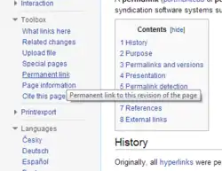 One cited early use of the term permalink in its current sense was by Jason Kottke on March 5, 2000, in a post titled: "Finally. Did you notice the".[1] Matthew Haughey had discussed a permalink-style feature with Blogger co-founders Evan Williams and Paul Bausch the previous weekend, and Bausch had pointed out that it was technically feasible to produce permanent links in Blogger, using a feature (written by him) that allowed the ID of a post to be placed in a Blogger template. In response to Kottke's blog, on March 6, 2000, Haughey posted the technical details on his own weblog,[2] which helped open the way to widespread adoption.
