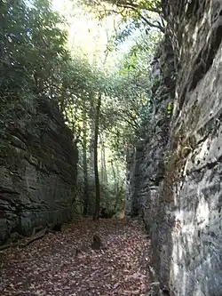 The Rock City Trail leads through rock city, a long crevasse between towering outcrops.