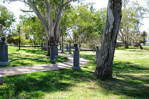 In 1998 a collection of 14 captains of the Australia International Test XI cricket team was unveiled in Jubilee Park, adjacent the Caravan Park. Specially commissioned, they were all the work of Harden-Murrumburrah sculptor Carl Valerius.