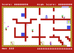 There are basic puzzles such as collecting keys, TNT, torches (some rooms are dark so the walls of the maze cannot be seen without the torch) and the code for the safe to advance in the game.