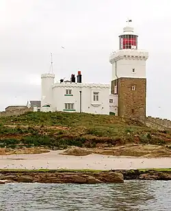 In 1990 the lighthouse was automated, at which point a revolving array of quartz halogen sealed beam lamps were installed in place of the old optic,[10][11] with columns of lamps grouped in threes on a rotating pedestal, so as to display three flashes every 30 seconds. Subsequently, these were replaced by a small revolving optic, mounted on an AGA PRB gearless drive.[12] Coquet's light has been solar powered since 2008.[13]