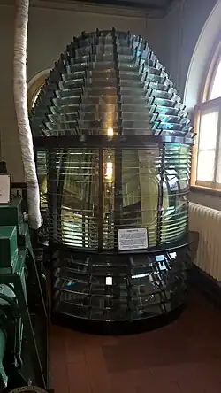 After its removal from the tower, the original 1841–1851 optic was exhibited (along with the old occulting apparatus) at the Trinity House National Lighthouse Museum in Penzance.[14] After the museum closed they were loaned to Souter Lighthouse where they were displayed for a number of years.[15]