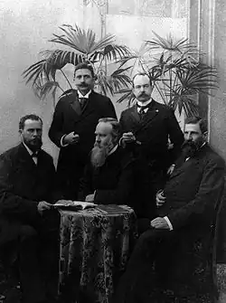 Wessels' political acumen brought him high office, from 1894 to 1896 as representative of the Volksraad in the Executive Council, and eventually as vice-president (1896–1897) and president (1897–1899) of the Volksraad. In this position, Wessels' diplomatic skills and strict impartiality acquired him great respect.[4] During the South African War, Wessels was recruited by President Steyn as a member of his war cabinet, the 'Krijgscommissie' (War Commission). When the war progressed and the Boer republics were looking for support from European states and the United States, the governments of the Boer republics appointed a special diplomatic delegation. It consisted of A. Fischer as chairman and for the Orange Free State, A.D.W. Wolmarans and Wessels as members for the South African Republic and the Orange Free State respectively. In Europe, the deputation met up with W.J. Leyds, ambassador for the South African Republic in Brussels and H.P.N. Muller, consul general and special envoy of the Orange Free State in The Netherlands. The encounter with Muller was a renewal of friendly relations between the two men, who first met in Bloemfontein in 1898, and again in May 1899 in The Hague, when Wessels brought a private visit to the Netherlands.[5] The delegation's mission to Europe failed, and was caught out by history in the United States. After the conclusion of the Treaty of Vereeniging Wessels and the other member of the delegation returned to South Africa.[4]