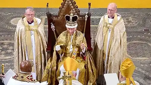 18. ^ Holden, Michael (1 March 2023). "Britain's coronation throne gets revamp ahead of King Charles' crowning". Reuters. Retrieved 1 March 2023.