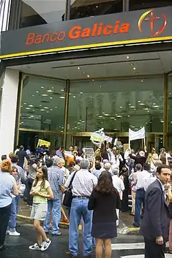Corralón was the informal name for the economic measures taken in Argentina at the beginning of 2002 by President Eduardo Duhalde during a bank run in which deposits and debt in dollars were exchanged to local currency at 1.4 per dollar for deposits and 1.0 for debt (this was also called pesificación asimétrica). Previously, the withdrawal of dollars was limited to $250 per week. After the forced exchanged, people no longer had any dollars on the system and those who had savings in US dollars lost 65% of their deposited value.