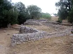 In the 20th century, Cosa was the site of excavations carried out under the auspices of the American Academy in Rome, initially under the direction of the archaeologist Frank Edward Brown. Excavations (1948–54, 1965–72) have traced the city plan, the principal buildings, the port, and have uncovered the Arx, the forum, and a number of houses.[11] Unexcavated buildings include a bathing establishment, but no trace of a theatre or an amphitheatre has been found. In the 1990s a series of excavations was carried out under the direction of Elizabeth Fentress, then associated with the American Academy in Rome.[12] This latter campaign aimed at understanding the history of the site between the imperial period and the Middle Ages. Sample excavations took place over the whole site, with larger excavations on the Arx, the Eastern Height and around the Forum.[13] From 2005 to 2012 the Universities of Granada and Barcelona excavated a domus, while from 2013 Florida State University[14] has excavated a bath building in the southwest corner of the Forum. From 2016, l’Università di Firenze has been excavating along the processional street P.
