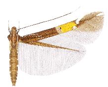 Male. Forewing length 3.7 mm. Head: frons shining ochreous-grey with greenish and reddish and reflections, vertex and neck tufts shining dark bronze brown with greenish and reddish and gloss, laterally and medially lined white, collar shining dark brown with greenish and reddish and gloss; labial palpus first segment very short, white, second segment three-quarters of the length of third, dark brown with white longitudinal lines laterally and ventrally, third segment white, lined brown laterally; scape dorsally dark brown with a white anterior line, ventrally white, antenna shining dark brown, with a short white line at base changing into an interrupted line to two-thirds, followed towards apex by three dark brown segments, one white, three dark brown and fifteen white segments at apex. Thorax and tegulae shining dark brown with reddish gloss, thorax with a white median line, tegulae lined white inwardly. Legs: shining dark brown with reddish gloss, femora of midleg and hindleg shining ochreous-grey with golden gloss, foreleg with a white line on tibia and tarsal segments one to three and five, tibia of midleg with white oblique basal and medial lines and a white apical ring, tarsal segment one with a whitish lateral line on the outside and a white apical spot, segment two with a white apical spot and segment five entirely white, tibia of hindleg with a very oblique silvery white line at base, a less oblique silvery white medial streak and a white apical ring, tarsal segment one with a silvery white basal streak on dorsum and an ochreous-grey apical ring, segments two to four with ochreous-grey apical rings, segment five entirely white, spurs ochreous-white dorsally, dark brown ventrally. Forewing shining dark brown with reddish gloss, four narrow white lines the basal area, a subcostal from base to one-quarter, bending from costa in distal third, a short medial above fold, its centre under the tip of the subcostal, a subdorsal similar to the medial, but slightly further from base, a short and very narrow dorsal from beyond base to one-fifth, a yellow transverse fascia beyond the middle, mixed greyish, narrowed towards dorsum, bordered at the inner edge by a tubercular silver metallic fascia with greenish and reddish reflections, bordered at the outer edge by two tubercular silver metallic costal and dorsal spots, the dorsal spot more than three times as large as the costal and more towards base, a small subcostal patch of blackish brown scales subcostally on the outside of the fascia, the costal and dorsal spots irregularly lined dark brown on the inside, a white costal streak from the costal spot, the apical line reduced to a few white scales in the middle of the apical area, followed by a shining white spot in the cilia at apex, cilia dark brown, paler towards dorsum. Hindwing shining dark greyish brown with greenish and reddish gloss, cilia brown. Underside: forewing shining dark brown, the white costal streak and the white spot at apex distinctly visible, hindwing shining dark greyish brown. Abdomen dorsally shining dark brown with greenish and reddish reflections, laterally dark brown, ventrally shining ochreous with segments banded shining white posteriorly, anal tuft brown.[1]