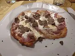Cotoletta alla bolognese (Italian: [kotoˈletta alla boloɲˈɲeːze, -eːse]; Bolognese: cutulàtta a la bulgnaiṡa) is a traditional dish of the city of Bologna, in the Emilia-Romagna region of Italy.[1][2] It is also known as petroniana, after Petronius, a fifth century bishop and the patron saint of Bologna.[3]
