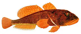 Cottoperca was first formally described as a genus in 1875 by the Austrian ichthyologist Franz Steindachner with Cottoperca rosenbergii which Steindachner described as its only species.[1] C. rosenbergii was later found to be a synonym of Batrachus trigloides which had been described by the German naturalist Johann Reinhold Forster in 1801.[2] Some taxonomic authorities consider that Cottoperca is monotypic and that the only valid species is C. gobio,[3] while others state the only valid species is C. trigloides,[4] although this is not the position taken by the 5th edition of Fishes of the World,[5] World Register of Marine Species,[6] FishBase[7] or the Catalog of Fishes, which all give the genus 2 species.[2] The genus name is made up from cottus, meaning "sculpin" and perca which means "perch", an allusion Steindachner did not explain but which is probably a reference to the sculpin like shape of C. rosenbergii.[8]