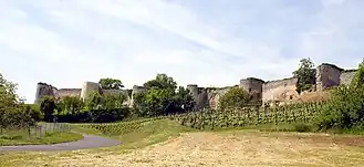 - Ruins of the Château de Coucy. The modern town is squeezed into the space within the medieval walls.