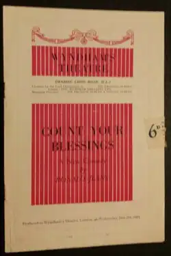 Count Your Blessings is a 1951 comedy play by the British writer Ronald Jeans. A married couple draw up a plan to solve their financial problems, but this soon runs into trouble.