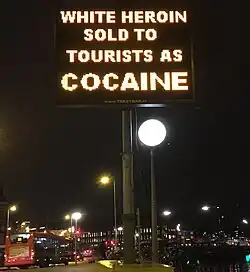 On 25 November 2014 two British tourists aged 20 and 21 died in a hotel room in Amsterdam, after snorting white heroin that was sold as cocaine by a street dealer.[11] The bodies were found less than a month after another British tourist died in similar circumstances. At least 17 other people have had medical treatment after taking the white heroin.[12]