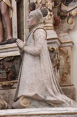 ![]() Sculpture of Elisabeth kneeling, epitaph in the Maurice Church in Coburg | |