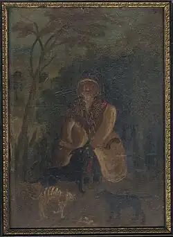 She was an accomplished woman, a lover of fine art, and an artist in oil, and she was powerfully and sincerely impressed with the righteousness of her claim. Her assertions, published in her jottings, were that John Radclyffe, the son of the last Earl of Derwentwater, and de jure 4th Earl of Derwentwater, did not die in 1732, but was trafficked to Germany, and in 1740 married at Frankfort-on-Main, Elizabeth Arabella Maria, Countess of Waldstein. He died there in 1798, in his eighty-sixth year. His son James, at that time in his fifty-fifth year, was his heir, and was married to Eleanora the Countess Mouravieff, but leaving no issue, was succeeded by his brother, John James, who was born at Alston, in Cumberland, in 1764. The latter died in 1833, having married, late in life, Amelia Anna Charlotte, Princess Sobieski, a descendant of the noted Polish family of that name. They had several children, of whom John James, born in 1816, and Amelia Matilda Radclyffe, the soi-disant Countess of Derwentwater, were the only survivors.[3]