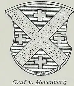 Count of Merenberg (German: Graf von Merenberg) is a hereditary title of nobility that was bestowed in 1868 by the reigning Prince of Waldeck and Pyrmont, George Victor, upon the morganatic wife and male-line descendants of Prince Nikolaus Wilhelm of Nassau (1832–1905), who married Natalia Alexandrovna Pushkina (1836–1913), former wife of Russian general Mikhail Leontievich von Dubelt.
