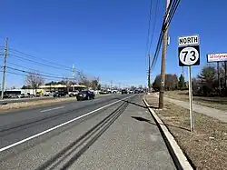 Route 73 serves as a main road in South Jersey that helps provide access between the Philadelphia area and the southern part of the Jersey Shore as well as connections to several local roads.[7] It has been rated one of the worst roads in the state in terms of traffic, accidents, and driver aggression.[8]