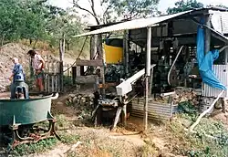 Around 1890, reef gold was found at Coen and mining recommenced. In 1892, Coen had a population of approximately 125 people, including a small population of 25 Chinese immigrants who prospected for gold and worked their market gardens. The buildings at Coen comprised a hotel, store, butcher's shop, blacksmith's shop and a row of 6 cottages occupied by miners and their families. The police camp was situated 2 miles from town on the Coen River and the telegraph station was 1 mile from town on Lankelly Creek. Supplies to Coen were transported from Cooktown to the Port Stewart store and from there bullock teams transported goods the 40 miles to Coen.[5]