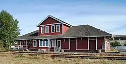 Courtenay Station was built in 1914 when the Esquimalt and Nanaimo Railway reached Courtenay. It was originally supposed to be a stop along the line to Campbell River, however, due to World War I the line only went as far as Courtenay.[2]
