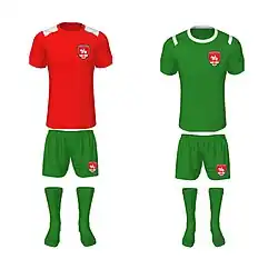 Coventry United's home kit is made up of the city's civic colours, red and green.