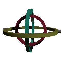 Gimbal lock occurs because any map T3RP3 is not a covering map. In particular, the relevant map carries any element of T3, that is, an ordered triple (a,b,c) of angles (real numbers mod 2π), to the composition of the three coordinate axis rotations Rx(a)Ry(b)Rz(c) by those angles, respectively. Each of these rotations, and their composition, is an element of the rotation group SO(3), which is topologically RP3. This animation shows a set of three gimbals mounted together to allow three degrees of freedom. When all three gimbals are lined up (in the same plane), the system can only move in two dimensions from this configuration, not three, and is in gimbal lock. In this case it can pitch or yaw, but not roll (rotate in the plane that the axes all lie in).