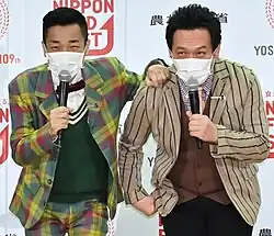 Cowcow is a Japanese comedy duo managed by the entertainment conglomerate Yoshimoto Kogyo who perform manzai comedy. The members, Yoshi (善し; born Yoshi Yamada (山田 與志, Yamada Yoshi), October 19, 1974), the tsukkomi of the group, and Kenji Tada (多田 健二, Tada Kenji; born August 8, 1974), the boke, are both from Osaka Prefecture. They have been guests on quite a few TV variety shows, such as Mecha-Mecha Iketeru!.