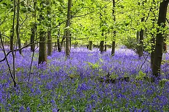 The Forestry Commission owns Coweleaze Wood, and planted it between 1957 and 1966.[1] It is particularly known for its bluebells,[2] and walkers are also attracted to the wood by sightings of red kites.[3][4] There is a large car park adjoining the wood, and a picnic area with sculptured benches designed by furniture designer Fred Baier.[5]